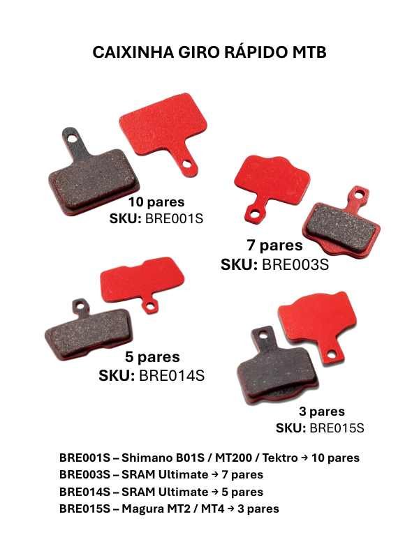 A Caixinha Oficina / Giro Rápido Bremstec foi pensada para quem precisa atender o maior número de bicicletas no dia a dia, com foco nos modelos de pastilhas de freio mais vendidos do mercado.